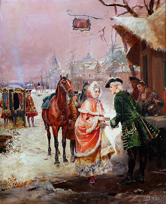 After graduation in 1866, Detti followed Fortuny’s example in traveling extensively to absorb new landscapes, new cities and new ideas. He spent considerable time in Naples in the late 1860s, and was included in an exhibition there in 1872. It was most likely during these years that he was introduced to the work of the engraver and illustrator, Bartolomeo Pinelli (1771-1835), in particular to his Costumes of the Kingdom of Naples, a series of 50 copperplate engravings published in 1828. In these images, Pinelli illustrated both costumes and customs in great detail; typically his carefully delineated figures dominate the engravings so that an attentive viewer can fully appreciate the intricacies of the clothing. As Detti defined his own aesthetic direction during the 1860s and 70s, he focused more and more on costumed genre painting that clearly owes a debt to Pinelli’s engravings as well as Fortuny’s meticulous realism.During the early 1870s Detti continued to base his career in Rome, but in 1876, he visited Paris, and it was at that point that he met Adolphe Goupil, one of the leading art dealers in Paris. Soon after that meeting, Detti’s paintings were on display in the gallery on the Boulevard Montmartre and they were also being transformed into engravings that Goupil could market to a middle-class audience. Detti’s association with Goupil introduced him to yet another group of artists, including Giuseppe De Nittis (1846-1884) and Ignacio de Leon y Escosura (1834-1901), both of whom were also represented by Goupil and Cie. Like Detti, their contracts called for them to paint a variety of genre scenes that would appeal to bourgeois art lovers who preferred images on a scale that would fit into their homes.