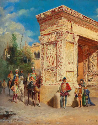 Cesare Augusto Detti (1847-1914) is considered one of Italy’s most celebrated historical Genre painters.Like most of the Italian peninsula in the nineteenth century, the Umbrian city of Spoleto was actively involved in the Risorgimento, the political and cultural movement for Italian unification. Inspired by the progressive ideals of the eighteenth century and the romantic nationalism of the 1820s and 1830s, the people took to the streets in 1848 to proclaim Italy a unified nation, no longer separated into small dominions based on historically defined boundaries. It was into this environment that Cesare Augusto Detti was born to Annunziata Vannini and Davide Detti on November 28, 1847, scarcely more than a month before the first of the revolutionary actions began. Against the backdrop of this populist political struggle, Detti enjoyed a comfortable childhood with parents who encouraged his interest in art.